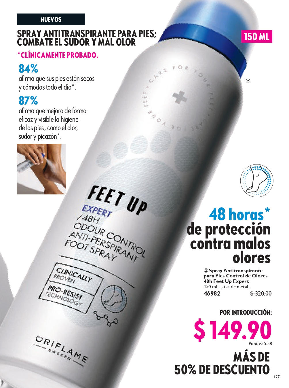Spray Desodorante para Pies con Menta y Kiwi Feet Up Cosméticos Oriflame - Spray desodorante con Menta revitalizante y extracto de Kiwi que mantiene a raya la frescura de los pies durante el verano con su fresco aroma afrutado. 150 ml.