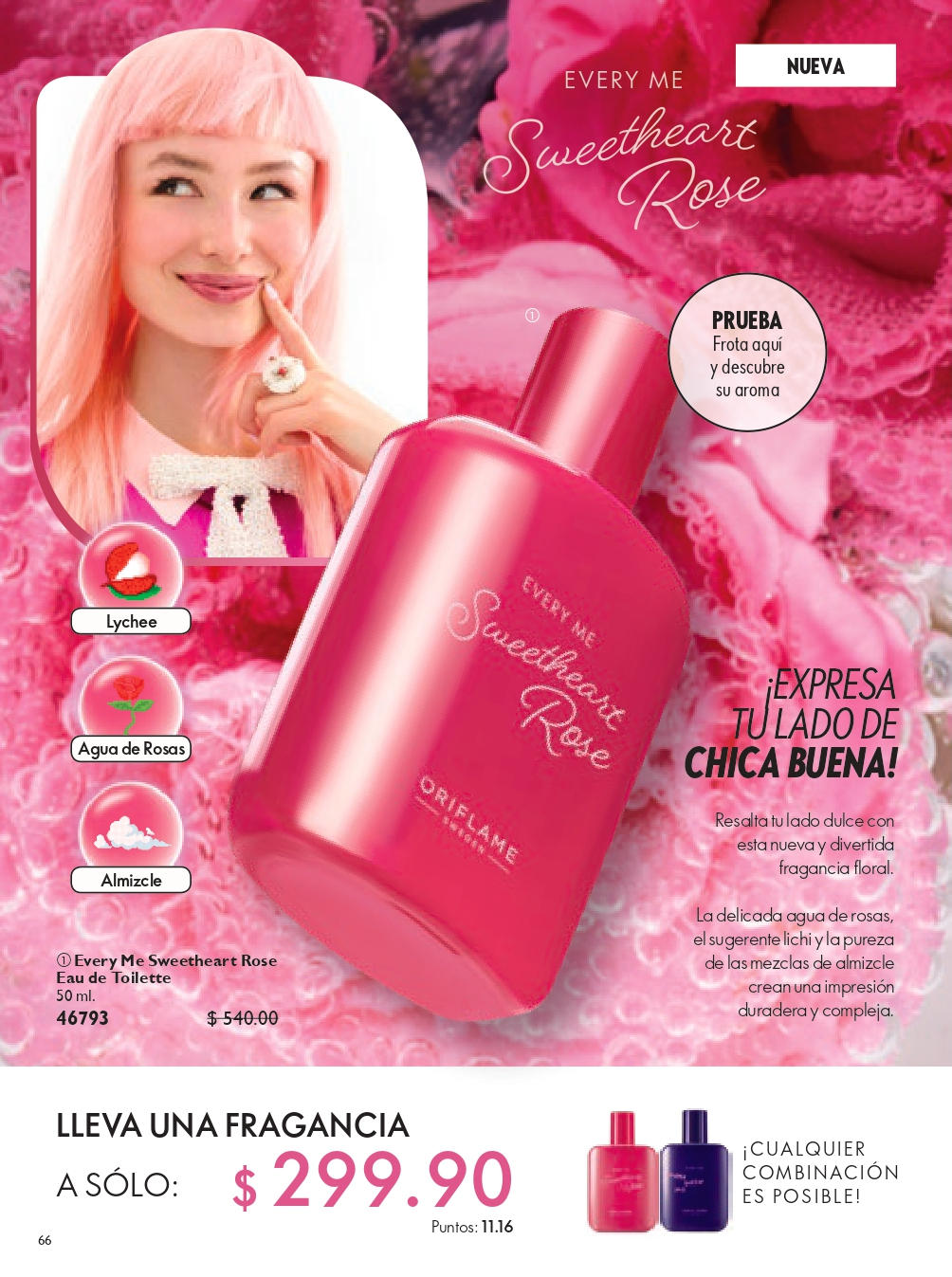 Eau de Parfum Volare Fragancias Oriflame - Un aroma rebosante de elegancia que reinterpreta la esencia de los pétalos de Rosa combinados con hojas de Violeta que recrean un aura lleno de romanticismo. Delicado, sensual y embriagador. 50 ml.