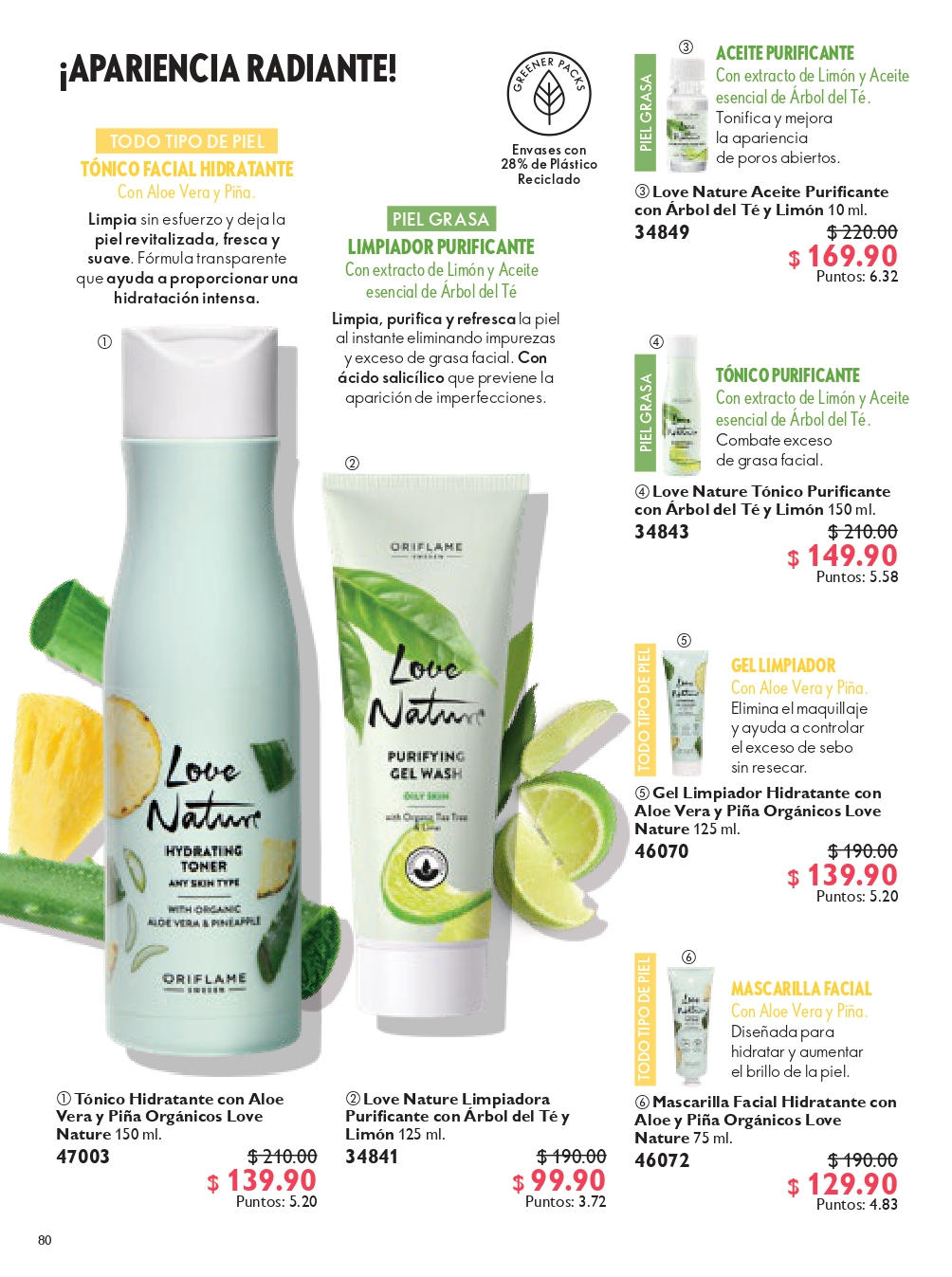 Limpiadora en Gel con Aloe Vera Love Nature Cosméticos Oriflame - Limpiadora espumosa ligera con extracto de Aloe Vera que elimina los restos de maquillaje y deja la piel fresca y suave. 150 ml.