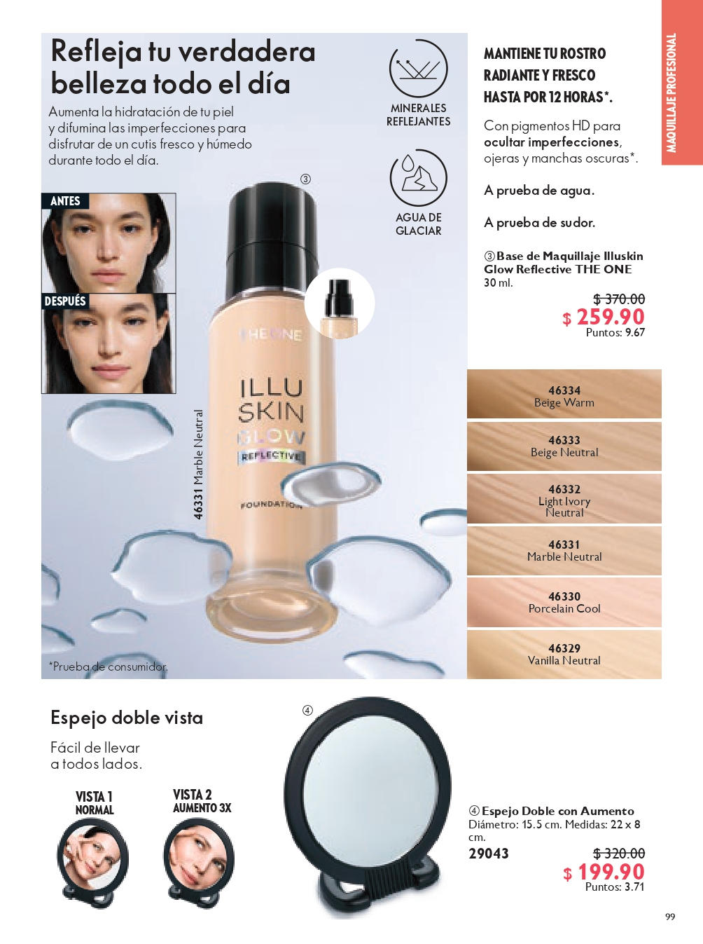 Base Fluida Antiedad Maquillaje Oriflame FPS 8 - Base que unifica el tono de la piel, dando una apariencia rejuvenecida gracias a su fórmula anti-edad con Extracto de Trufa Blanca. Porcelain - Light Rose - Light Ivory - Rose Beige - Natural Beige.